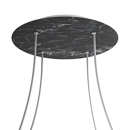 Creative cables Rosone XXL Rose-One Rotondo, Diametro 400 mm con 4 Fori e 4 Fori Laterali - Marmo Marquina, Bianco
