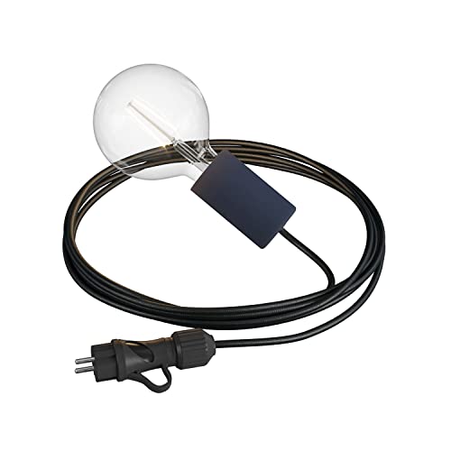 Creative cables Snake Eiva Elegant, Lampada Portatile per Esterni, 5 m Cavo Tessile, portalampada IP65 Waterproof e Spina - con Lampadina, Grafite