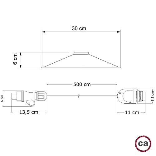 Creative cables Snake Eiva con Paralume Swing, Lampada Portatile per Esterni, 5 m Cavo Tessile, portalampada IP65 Waterproof e Spina - con Lampadina, Bianco - Rame Satinato