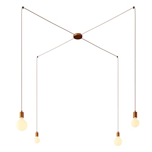 Creative cables - Spider - Lampada a sospensione multipla a 4 cadute Made in Italy completa di cavo tessile e finiture in metallo - Montato, Senza lampadina, Rame satinato