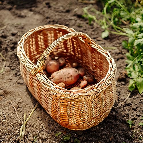 Creative Home Cestino in Vimini con Manico e Treccia | Cesto Funghi Picnic | 45 x 32 x 34 cm (+/- 1 cm) | Tessuto Fatto a Mano Durevole | Salice Naturale Marrone Spesso | Multiuso