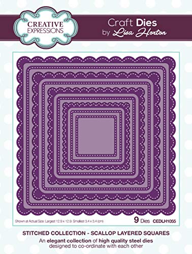 Creative Expressions Stitched Lisa Horton Scallop Layered Square Fustelle da Taglio in Metallo - Taglia su Carta, Cartone, Feltro, Tessuto - Compatibili con Macchina Fustellatrice - Goffratura, Album