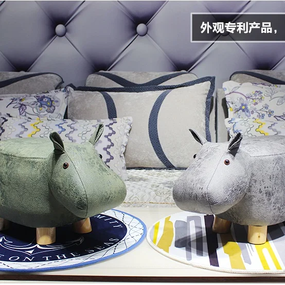 Creative Fashion Calf Stool Elephant Hippo Bench Shoes Bench Stool Children Cartoon Stool Solid Wood Animal Stool