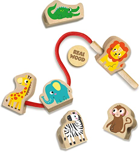 SES Creative- My First-Lacing Perline Animali di Legno, Vari Colori, Small, 14487