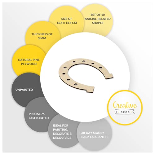 Creative Deco 10 x Forma a Ferro di Cavallo Semicerchio | Ritagli in Legno Compensato | 16,5 x 14,5 cm | Forme Non dipinte | Perfette per Dipingere, Decorare, Decoupage o Come Regalo