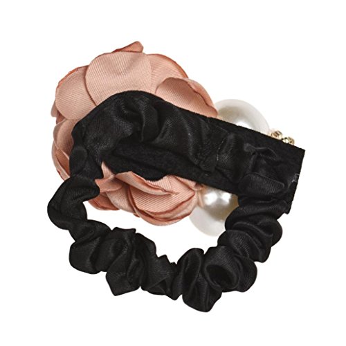 Hkfv creative Pretty design Charming fiore motivo fermagli per capelli con perle perline rosa fiore capelli banda corda elastico per capelli coda di cavallo