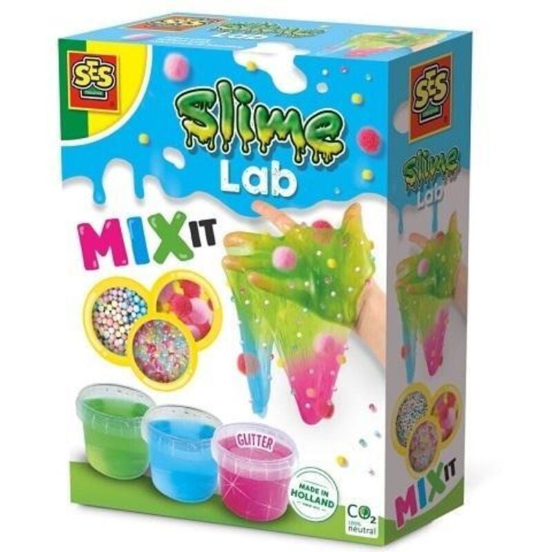 SES Creative Slime Lab Mix ItSlime time! Non hai paura delle mani sporche? Allora questo set di slime è davvero quello che fa per te. Lascia scivolare lo slime tra le mani e decoralo con palline, perline e pompon. Hai bisogno di un nuovo colore? Quindi mescola insieme diversi colori di slime e guarda cosa succede! Questo set di mix contiene tre bellissimi tipi di slime, ciascuno con un colore e uno spessore diversi. Mescoliamolo!
