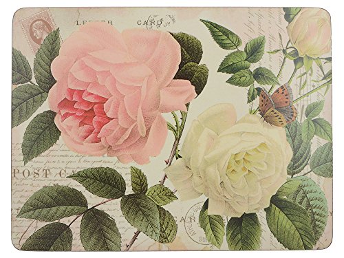 Creative Tops, tovagliette con Rose, con Retro in Sughero, Colori Legno e Rosso, 4 Pezzi, Grandi