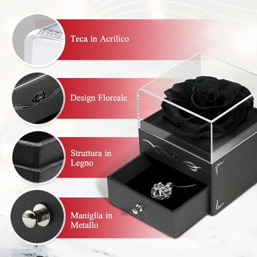 Creativity Driven Fiori Jewelry Box Con Collana, Eterna Rosa Stabilizzata Vera, Regali per Festa Della Mamma, Donna, Fidanzata, Compleanno, Ringraziamento, San Valentino, Anniversario per Lei (Nero)