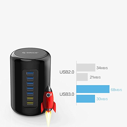 USB3.0 Hub Creativo 7-Port Connessione HUB Notebook Extender nero per Windowsc / Linux / Mac (con alimentazione autonoma)