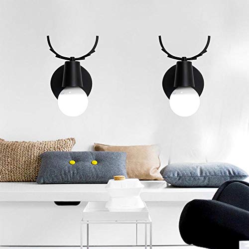Creativo Applique da Parete Moderno Lampada da Parete a forma di testa di cervo metallo Lampada a Muro in ferro retrò E27 per soggiorni Camera da Letto dei Bambini sala da pranzo bar, Nero