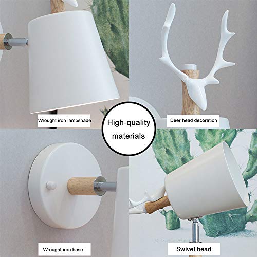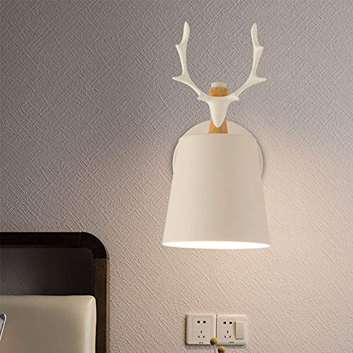 Creativo Applique da Parete Moderno Lampada da Parete Semplice Lampada a Muro E27 Testa di Cervo Nordico Stile Art Deco per Camera da Letto dei Bambini, Ristorante, Corridoio, Scale, Bianco
