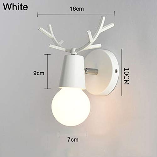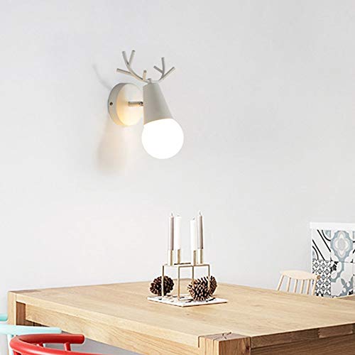Creativo Applique da Parete Moderno Lampada da Parete Semplice Lampada a Muro E27 Testa di Cervo Nordico Stile Art Deco per Camera da Letto dei Bambini, Ristorante, Corridoio, Scale (B, Bianca)