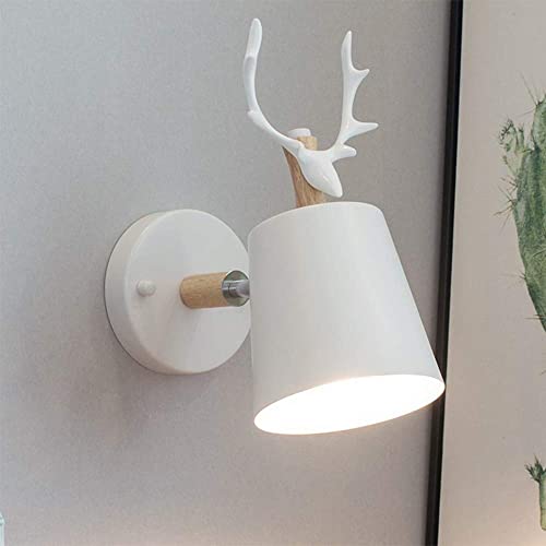 Creativo Applique da Parete Moderno Lampada da Parete Semplice Lampada a Muro E27 Testa di Cervo Nordico Stile Art Deco per Camera da Letto dei Bambini, Ristorante, Corridoio, Scale (A, Bianca)