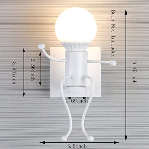 Dimensioni: W5,5 × H9,45 × DEP7,5 pollici. Materiale: ferro metallico. Finitura: vernice per cottura. Stile: moderno / contemporaneo. Caratteristica: Creative Little People. Tipo di installazione: montaggio superficiale. [Lampadina non inclusa].