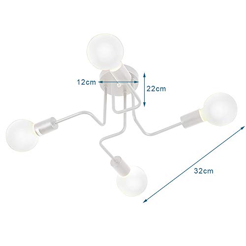 Creativo Lampada da Soffitto Industriale Vintage a 4 Teste Plafoniera Moderno in Metallo Lampadario per Camera da Letto Sala da Pranzo Soggiorno (Bianco)
