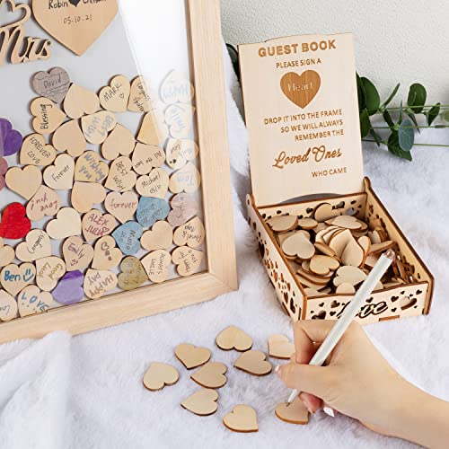 Creawoo - Cornice per Libro degli Ospiti in Legno, con 100 Cuori Vuoti per Regali di Nozze e Amici (Legno)