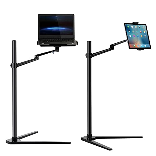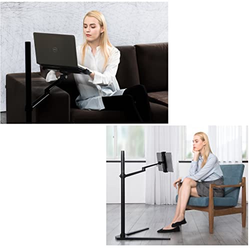 Crecontino Supporto da pavimento per laptop fino a 17" e tablet, iPad, iPad Pro fino a 13", in alluminio, stabile, regolabile (nero)