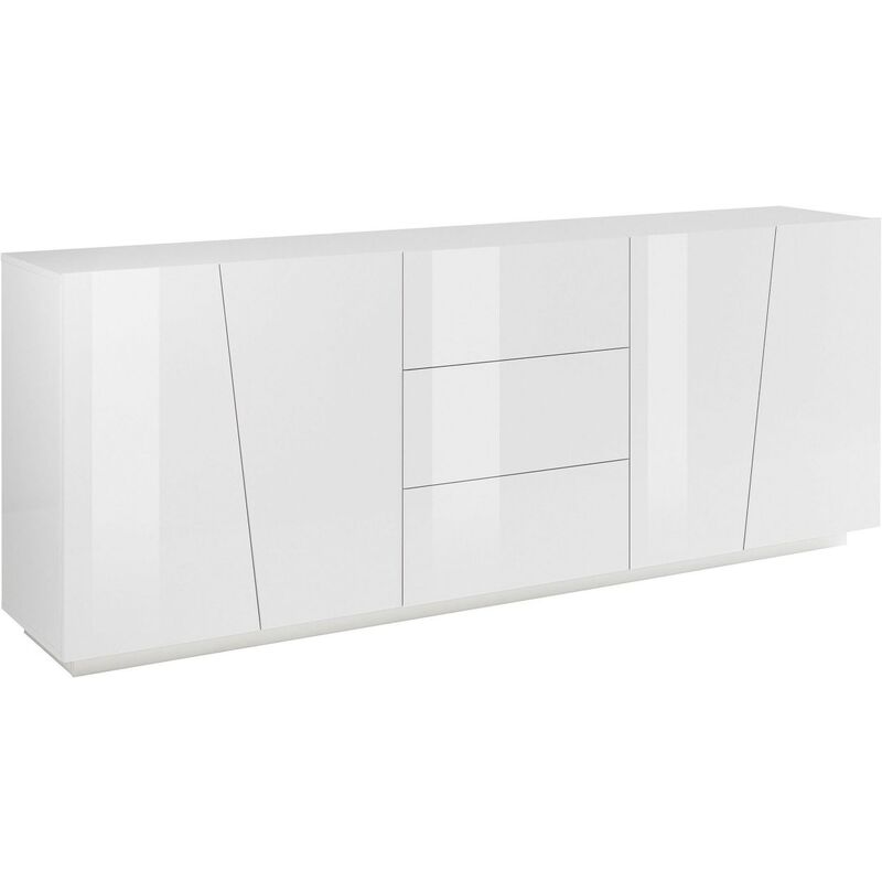 La credenza 4 ante 3 cassetti da 220 cm VEGA è una soluzione utile sia in soggiorno sia in sala pranzo. Grazie ai molteplici spazi offerti si rivela un mobile pratico e capiente di design originale ed elevata funzionalità 100% made in Italy. La credenza VEGA è costituita da 4 ante battenti con il taglio in diagonale con all'interno 2 ripiani in legno che garantiscono un ampio spazio di utilizzo e di archiviazione e da 3 cassetti con apertura push to open . La struttura, le ante e i cassetti sono realizzati in melaminico bianco lucido. Viene fornita in kit di montaggio e dotata di istruzioni semplici e dettagliate.