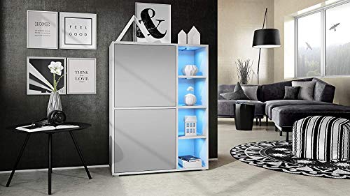 Elb Credenza Wanda Anche con luci a LED. Otto Scomparti. Vari Colori. (Seta Grigio Chiaro Opaco)