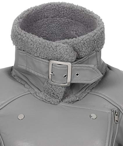 Rock Creek Selection D-367 - Giacca invernale da donna, in ecopelle, con colletto in pelliccia grigio. XL