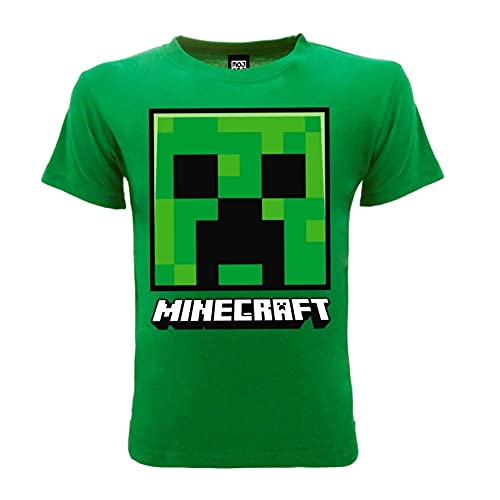 CREEPER T-Shirt Minecraf Face Ufficiale Originale Bambino Ragazzo Verde (7-8 Anni)