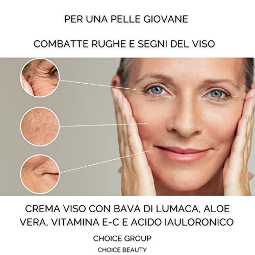 50ml. Crema viso antirughe bava di lumaca,acido ialuronico 100%,vitamica C,ingredienti a azione Antietà,Cicatrizzante e Antimacchia per Viso,Collo e Contorno Occhi. Made in Italy 100%