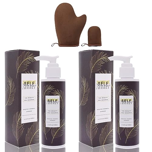 Crema Autoabbronzante, Acceleratore Di Abbronzatura, Lozione Autoabbronzante, Crema Abbronzante Per Viso E Corpo, Ottieni Rapidamente L'Effetto Beauty Black (2 Bottiglie + 2 Guanti)