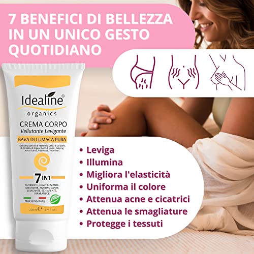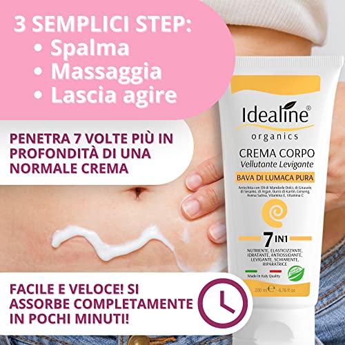 Crema Corpo Bava di Lumaca Pura BIO 7 AZIONI IN 1 Levigante Vellutante Smagliature 200ml Vitamina C+E Argan Oil Karitè Ginseng Sesamo Avena Idealine