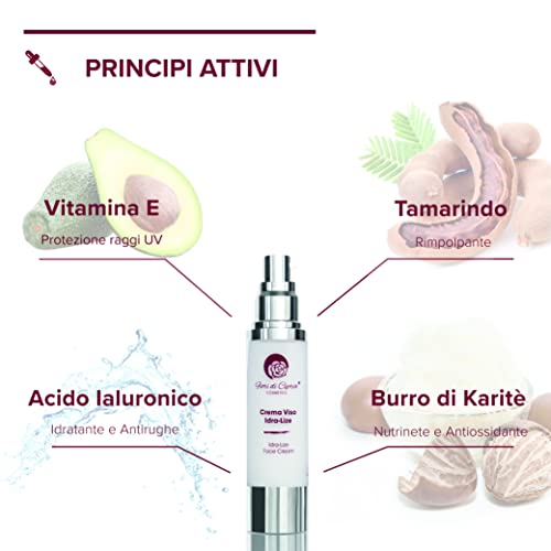 Crema Viso Idra-Lize - Antirughe idratante con Acido Ialuronico puro e Peptidi Filler per giorno e notte. "Fiori di Cipria" MADE IN ITALY. 50 ml. Effetto Anti-Age. Rigenerante Booster di Collagene.