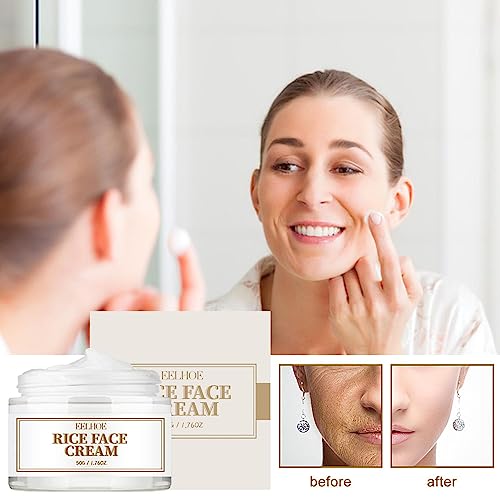 Crema idratante per viso di riso - Crema viso altamente idratante e schiarente,Crema per l'acqua di riso per viso, sbiancamento della pelle, riso