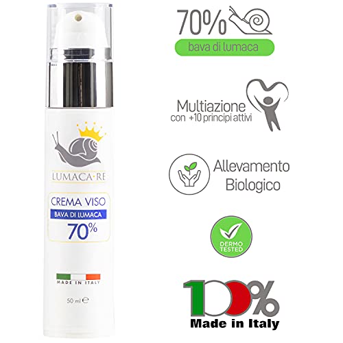 Crema Viso Bava di Lumaca PURA 50ml idratante con Collagene e Vitamina C, Antirughe & Antimacchia, per pelle Grassa Mista e Secca - Uomo & Donna, Notte & Giorno -Made in Italy LUMACA⋅RE