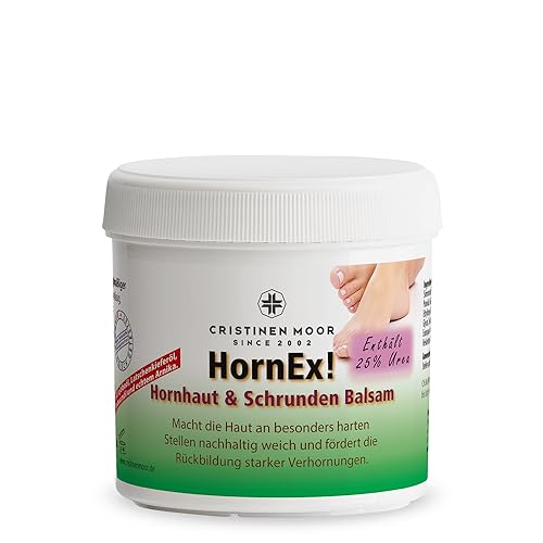 Balsamo per calli e ragadi con il 25% di urea per una riduzione affidabile di calli su piedi, gomiti, calli sulle mani. Contiene olio di jojoba, olio dell'albero del tè e olio di pino mugo e allo stesso tempo impedisce ai microbi di proliferare. HornEx! Il balsamo per calli e regadi è stato appositamente sviluppato e testato per la pelle predisposta ai calli.