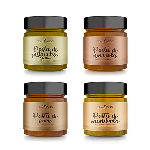 Creme Spalmabili 100% Confezione da 4 pezzi - Pasta di Pistacchio, Noce, Mandorla, Nocciole, Creme di frutta secca 100% senza additivi - Italia Spezie