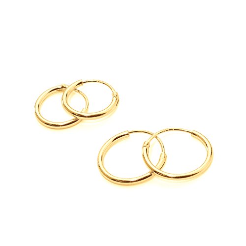 2 Paar Creolen, vergoldet, Sterling Silber, klein, für Knorpel, Nase oder Lippen, 10 und 12 mm