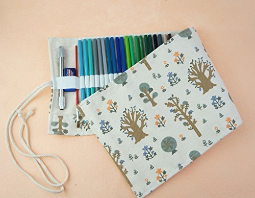 Creoogo puro fatto a mano tela avvolgere matita sacchetto, arrotolabile, multifunzione, schizzi e disegni di custodia ideale per scuola ufficio arte 36-Holes Sapling