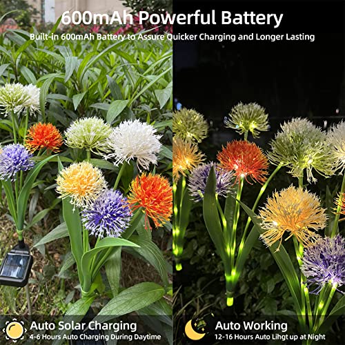 Lunga durata: con un pannello solare più grande e una batteria ricaricabile Ni MH da 600 mAh, questa lampada solare da giardino si ricarica più velocemente durante il giorno e funziona più a lungo di notte. Questi fiori solari possono illuminare il vostro giardino fino a 8-15 ore a carica completa.