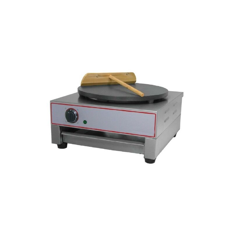 Codice RS0672 - Crepiera tonda elettrica modello BE-DE1, 230 volt, 3.0 kw, dimensioni cm. 45x48x24 (lxpxh), diametro piastra cm. 40 senza incavo perimetrale. Struttura in acciaio inox. Piano di cottura in ghisa idonea per alimenti. Dotata di termostato per la regolazione della temperatura e termostato di sicurezza.