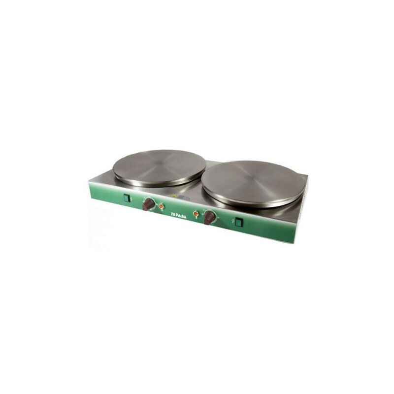 Codice RS3538 - Crepiera tonda elettrica, modello FF-D40-SA, 400 volt, 5.5 kw, dimensioni cm. 81x47x12 (lxpxh), diametro piastre cm. 40 senza incavo perimetrale. Struttura in acciaio inox. Piano di cottura in ghisa idonea per alimenti. Dotata di termostato per la regolazione della temperatura e termostato di sicurezza.