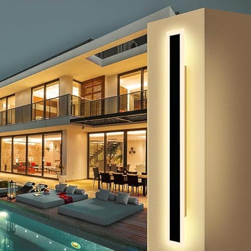 【Impermeabile IP65】:L'applique lunga da esterno ha un grado di protezione IP65 ed è resistente al vento, alla pioggia, alla neve e al sole per qualsiasi uso all'aperto o al chiuso. L'alloggiamento in alluminio di alta qualità ha un aspetto elegante e la sorgente luminosa a LED e il driver sono impermeabili.