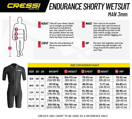Cressi Endurance Man Shorty Wetsuit Muta con Zip Sternale, Neoprene 3 mm, Nero, Uomo, XXL
