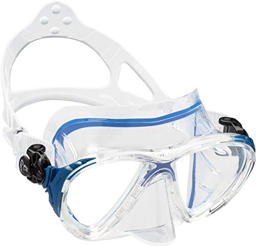 La forma ellittica più ampia del boccaglio aumenta la capacità del flusso d'aria per una respirazione più confortevole e una valvola di spurgo consente una pulizia immediata quando necessario. La maschera è realizzata in Italia in silicone ipoallergenico per garantire comfort e una perfetta tenuta. Dispone di lenti a goccia inclinate e invertite per migliorare la visibilità verso il basso, un design brevettato di Cressi (US 6272693). Lenti in vetro temperato..