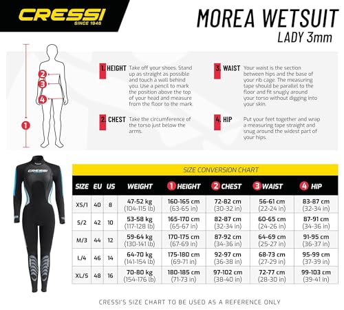 Cressi Morea Lady Wetsuit Full 3 mm, Muta Monopezzo Neoprene Ultrastretch Donna, Nero/Acquamarina/Silver, L