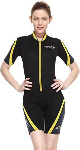 Cressi Playa Lady Shorty, Muta High Stretch In Neoprene 2 5 Mm Donna, Nero/Giallo, 3XL