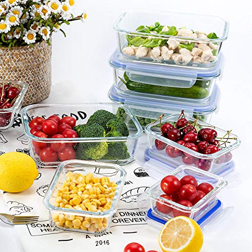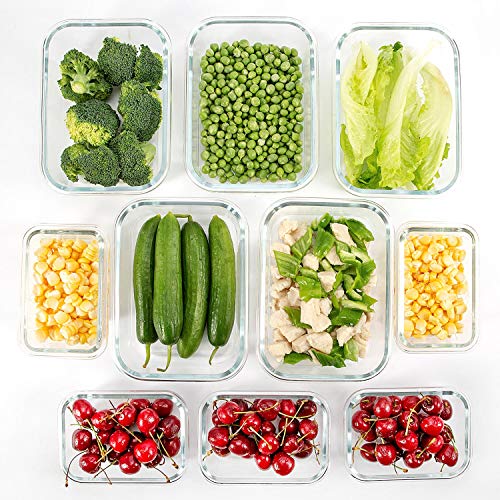 CREST Set di 10 contenitori per Alimenti in Vetro - Contenitori Vetro Eermetici Alimenti - 20 Pezzi (10 contenitori + 10 coperchi) - Senza BPA - Adatto per lavastoviglie, Congelatore, Microonde