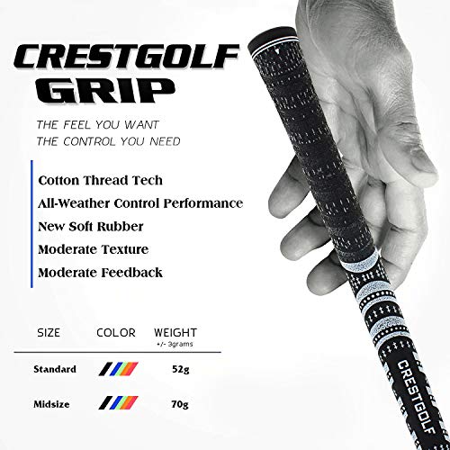 Crestgolf, grip antiscivolo realizzato in materiale multicomponente per mazze da golf, 13 pezzi, misura standard o media, Nero, Taglia media
