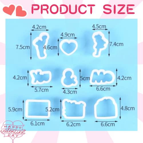 Crethink Set di formine per biscotti di San Valentino, in plastica, 9 pezzi, per biscotti di San Valentino, uomo, donna, lettera d'amore, cuore, parole, per biscotti fondente, fai da te.