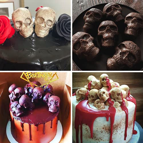 Crethink Set di 4 stampi in silicone a forma di teschio, adatti per fare torte, cioccolato, cubetti di ghiaccio, caramelle, gelatine, sapone, sommer, vacanze e Halloween.