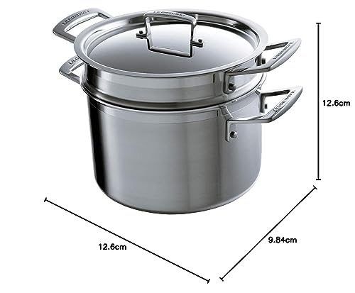 Le Creuset Casseruola alta Classic con coperchio e scolapasta in acciaio inox, diameter 20 cm, Volume 6.0L, Compatibile con Tutte Le Fonti di Calore (Induzione Inclusa), 96200520001000
