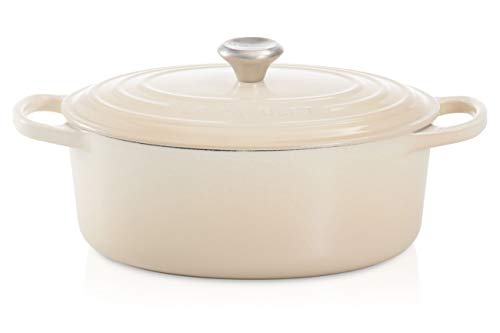 Le Creuset Casseruola Evolution in ghisa con coperchio, Ø 31 cm, Ovale, adatta a tutte le fonti di calore incl. induzione, Volume: 6.3 l, 5.705 kg, Beige (Crema)